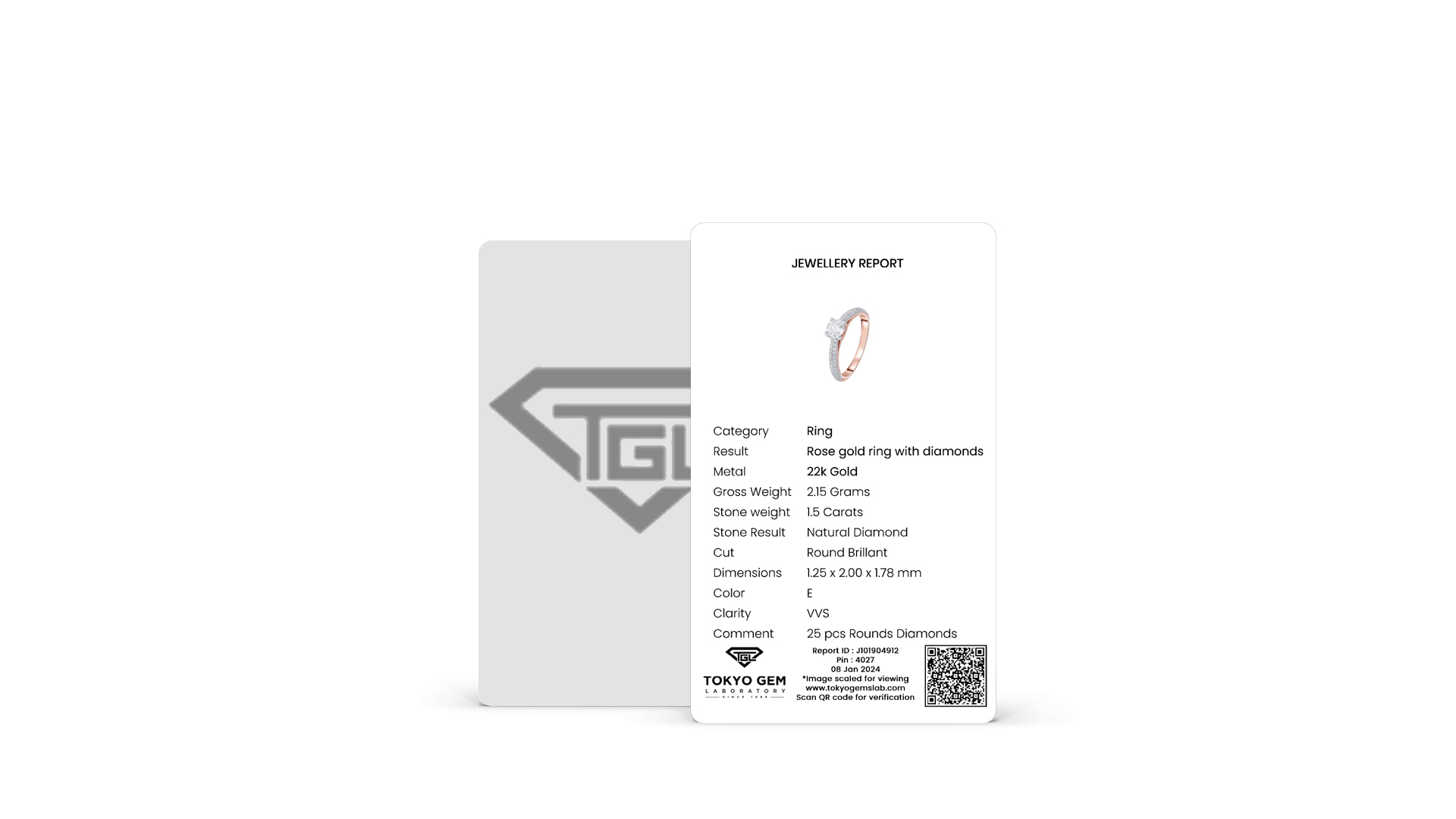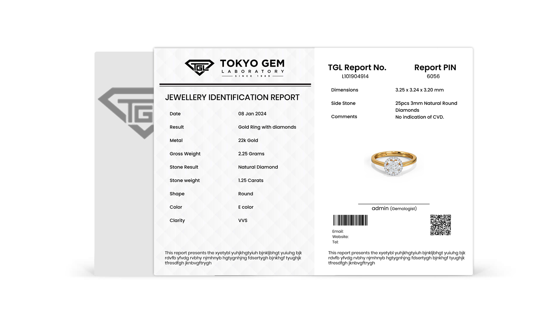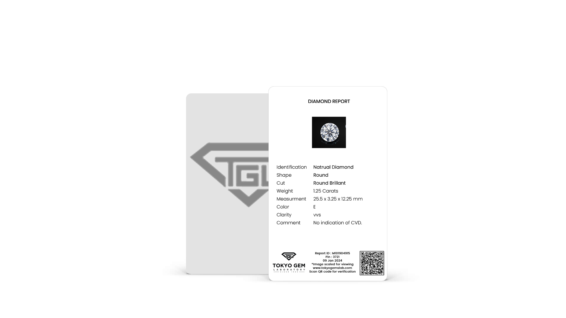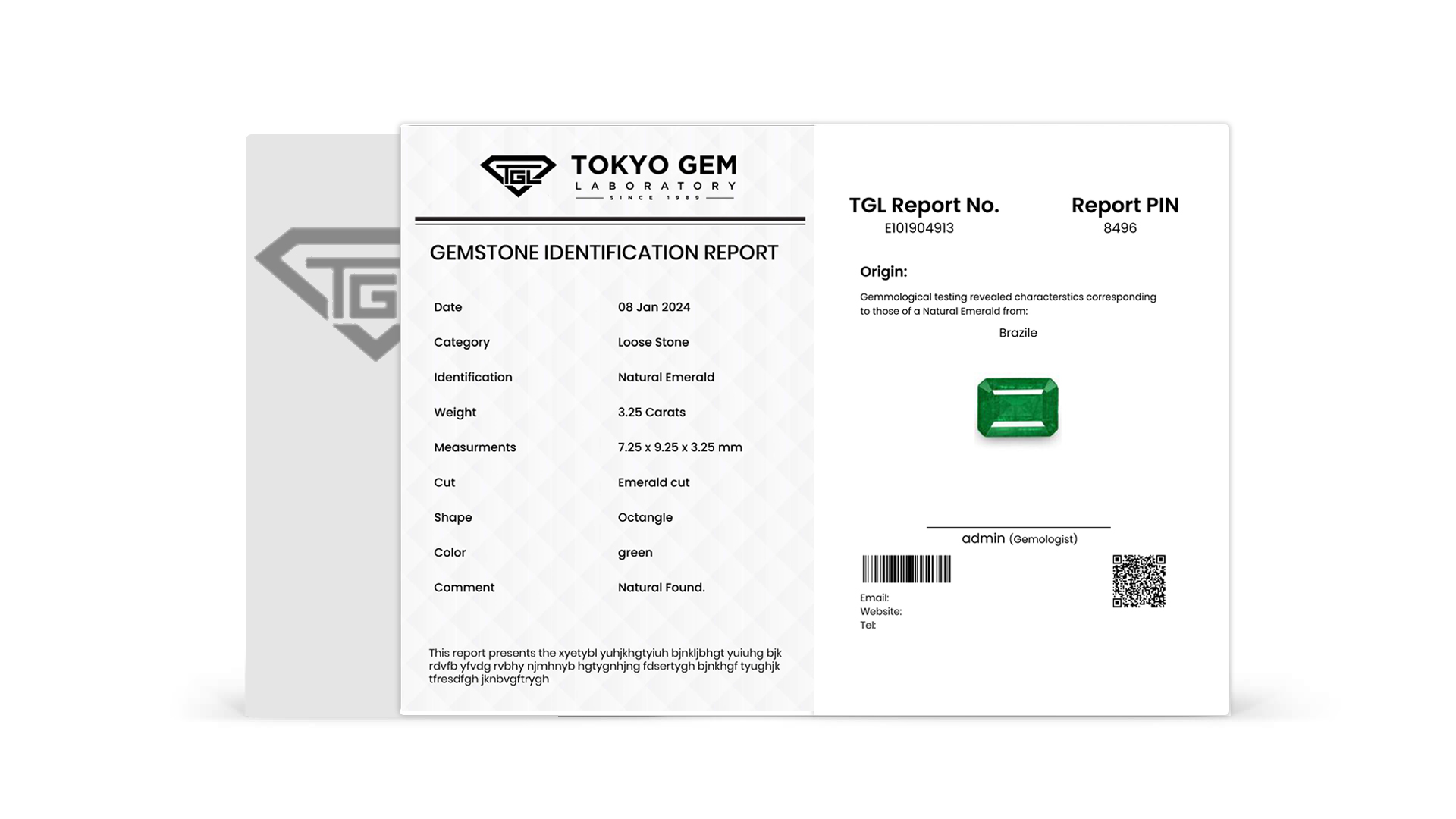 With Gemstone photo and verification Qr on the front, the Tokyo Gem laboratory mini report is credit -card sized identification report that easyly fits into your wallet.credit -card sized identification report that easyly fits into your wallet.