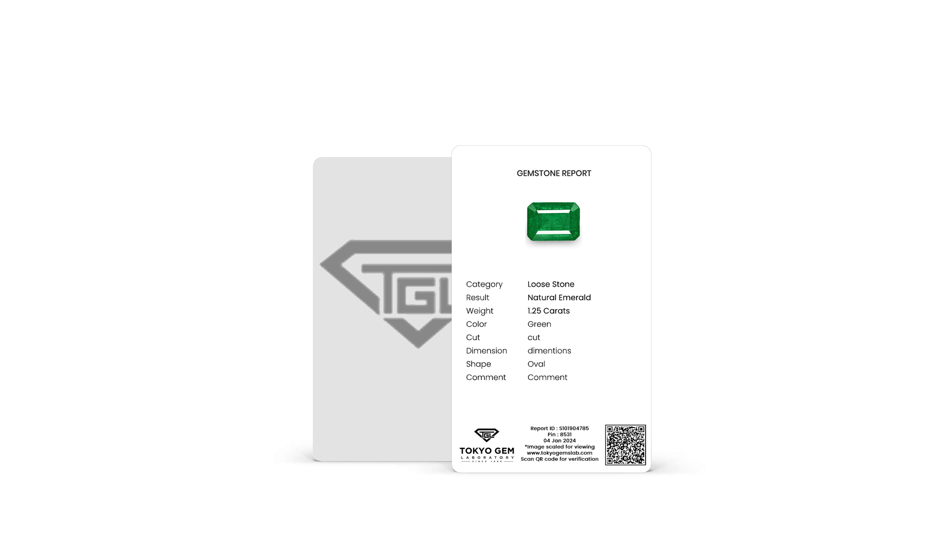 With Gemstone photo and verification Qr on the front, the Tokyo Gem laboratory mini report is credit -card sized identification report that easyly fits into your wallet.credit -card sized identification report that easyly fits into your wallet.